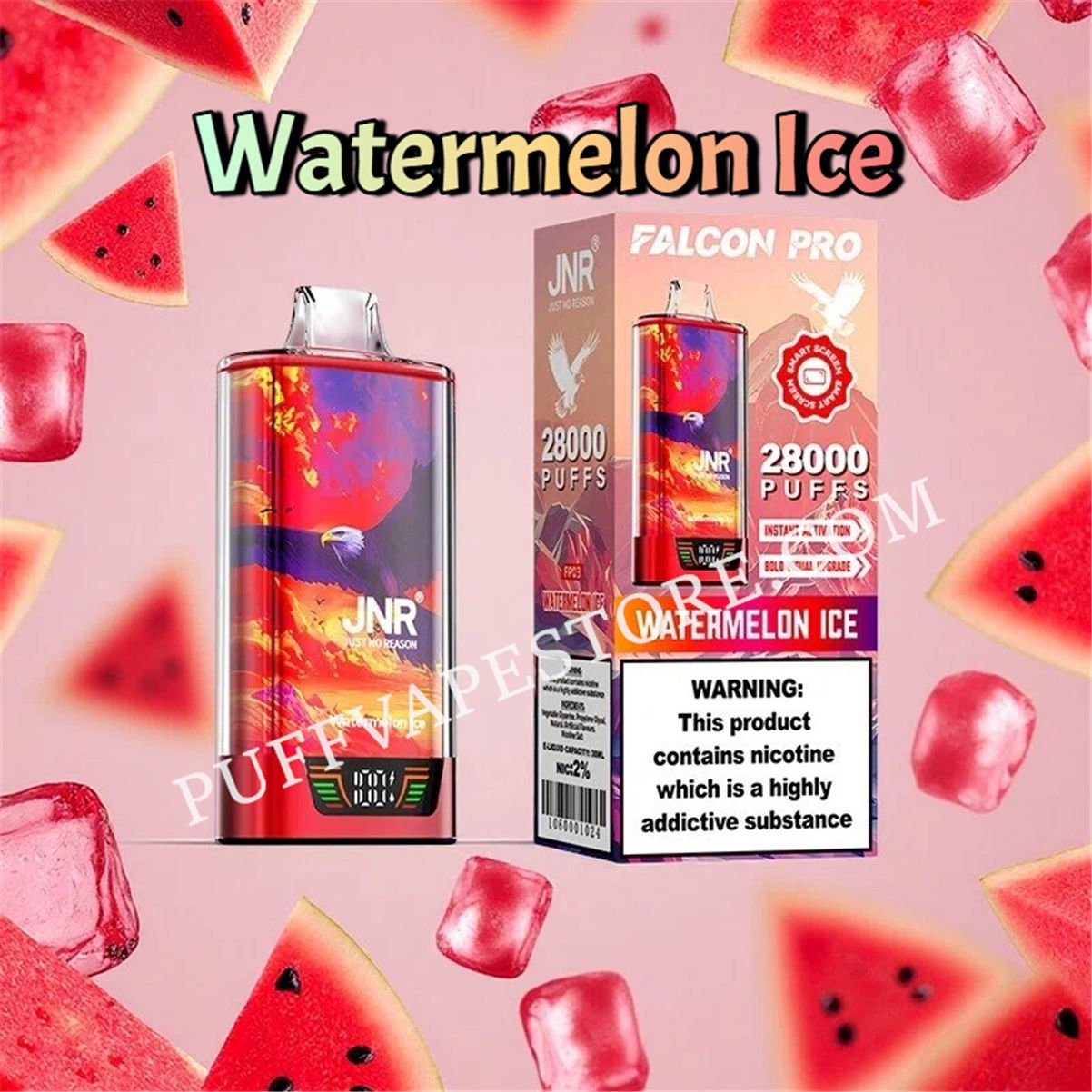 - Jede elektronische Zigarette JNR Falcon Pro 28000 Watermelon Ice bietet etwa 28000 Züge.