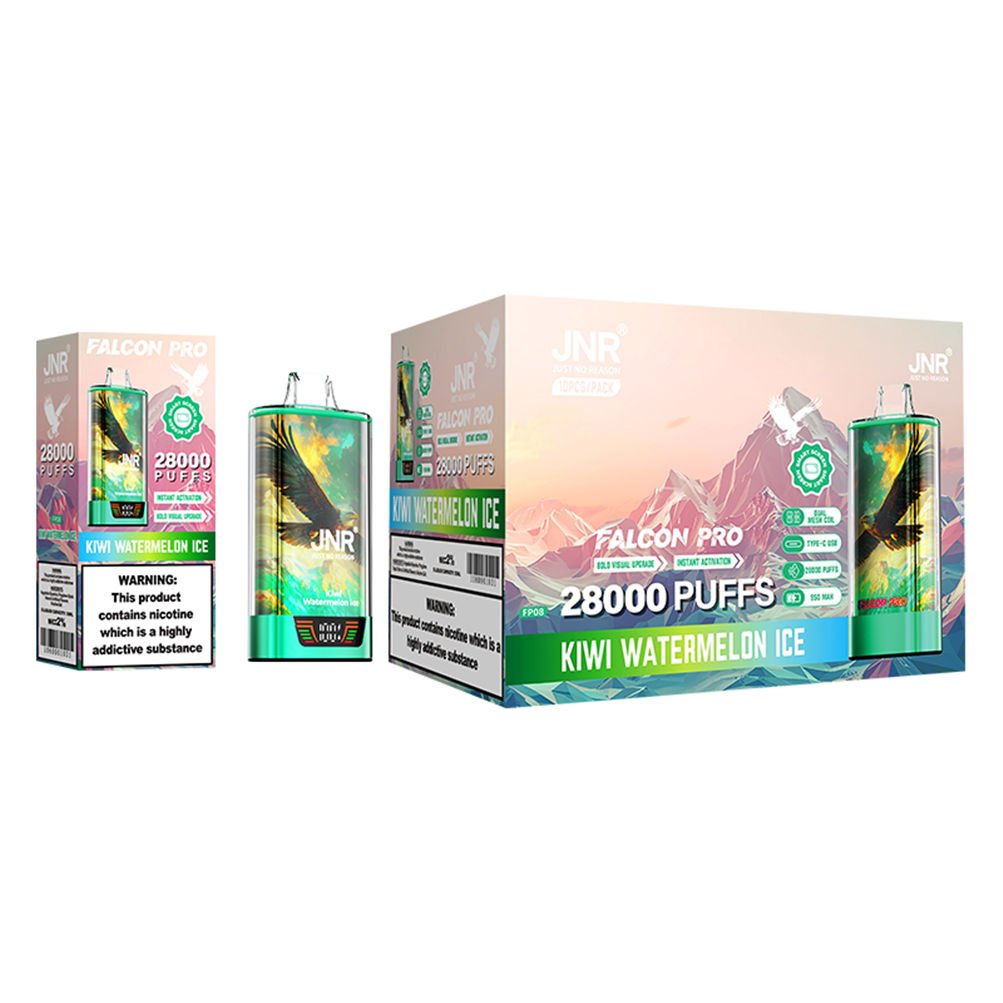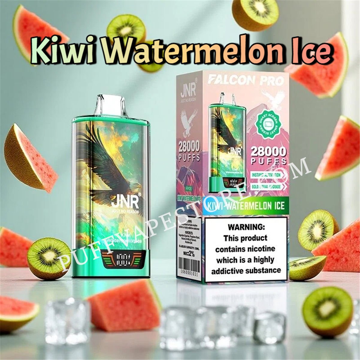 - Jede elektronische Zigarette JNR Falcon Pro 28000 Kiwi Watermelon Ice bietet etwa 28000 Züge.