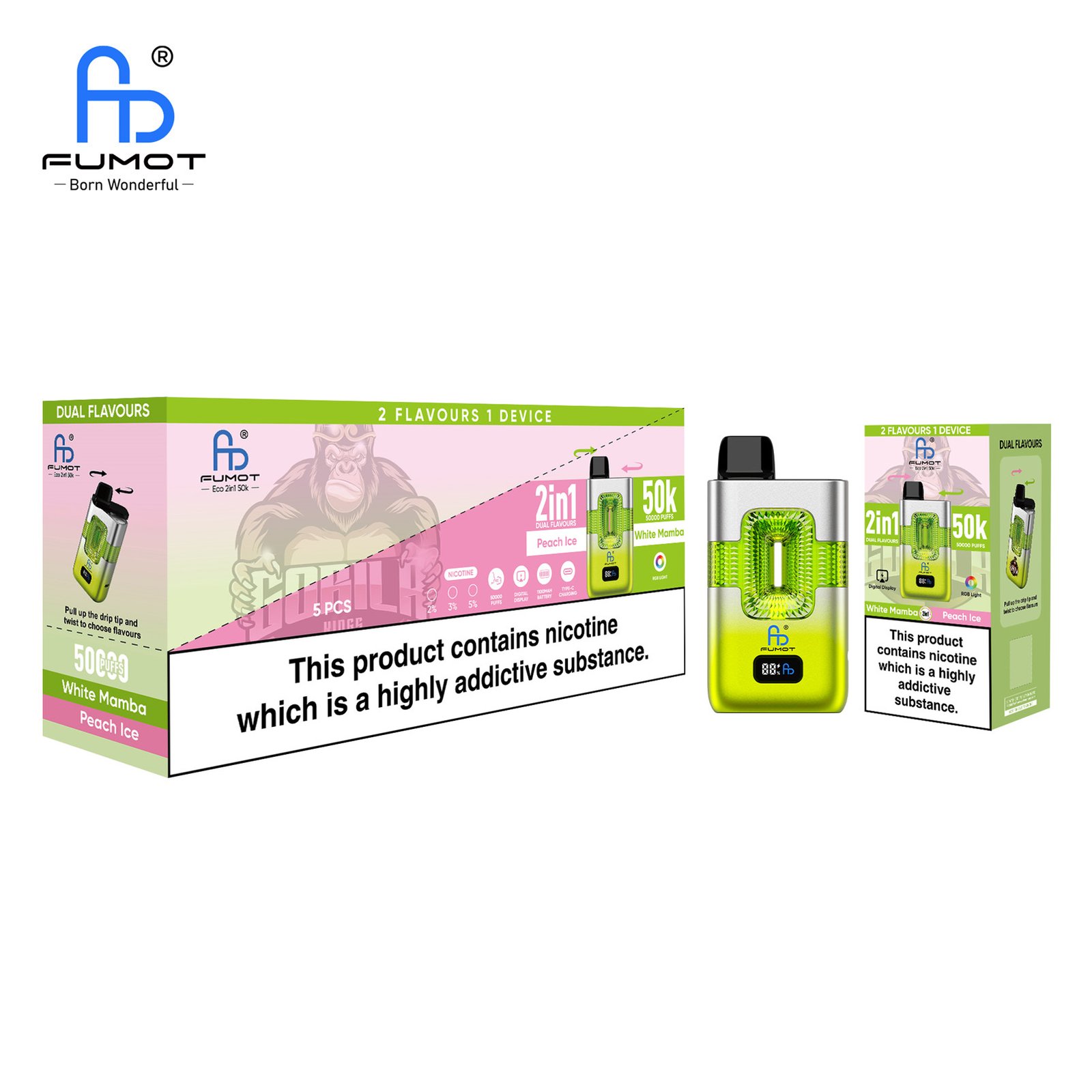 Fumot RandM Tornado 50000 Peach Ice & White Mamba | Fumot ECO 2in1 50K