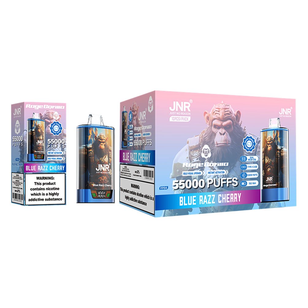 Ogni sigaretta elettronica JNR Rage Gorilla 55000 Blue Razz Cherry offre fino a 55.000 boccate.