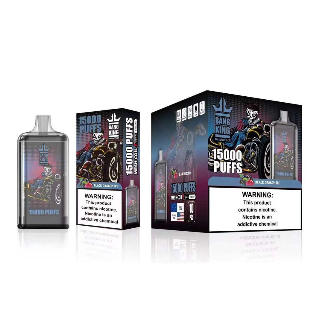 La Bang King 15000 met l’accent sur la fonctionnalité et arbore un design moderne aux lignes épurées et aux coloris variés pour s’adapter aux préférences esthétiques de chaque utilisateur. Sa conception ergonomique assure une prise en main confortable et une utilisation sans fatigue même après de longues périodes.