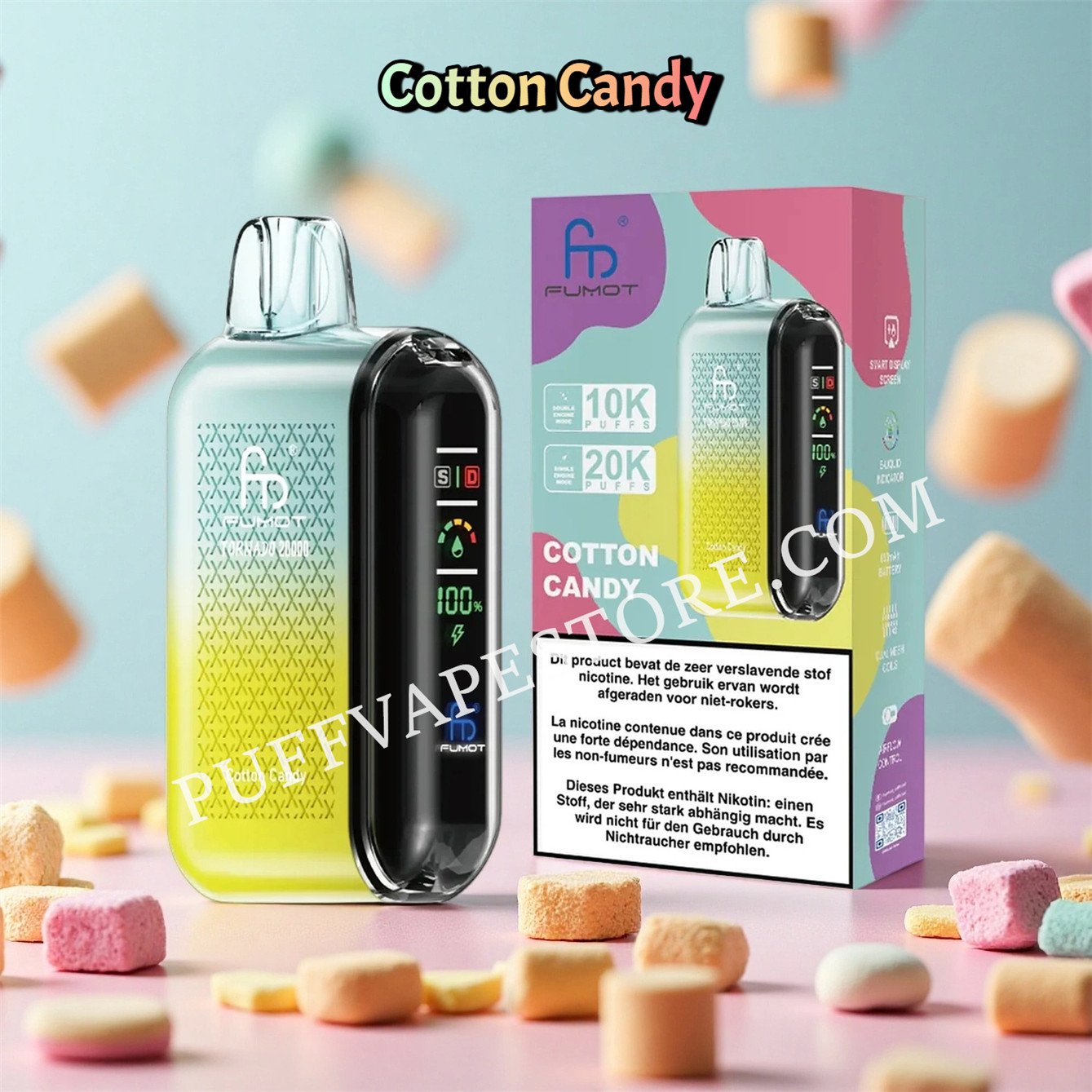 Le Fumot Tornado 20000 Cotton Candy est bien plus qu’un simple appareil électronique ; il est le reflet de votre goût raffiné. Il transforme une expérience de fumage durable, haut de gamme et personnalisable en un élément essentiel de votre style de vie élégant.