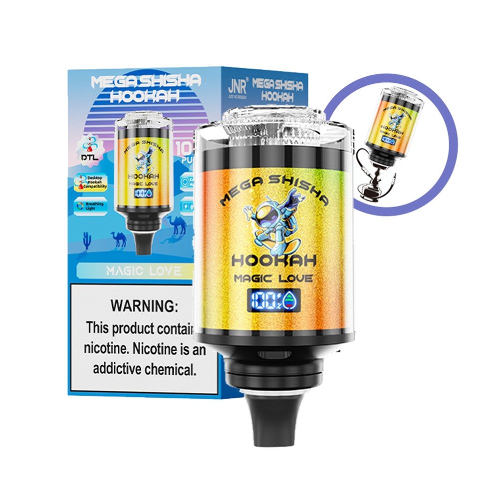 La JNR Mega Shisha Hookah 100K est une cigarette électronique tout-en-un. Bien qu'on l'appelle « narguilé », c'est pour souligner sa saveur riche et sa production abondante de vapeur, similaires à celles d'une chicha.