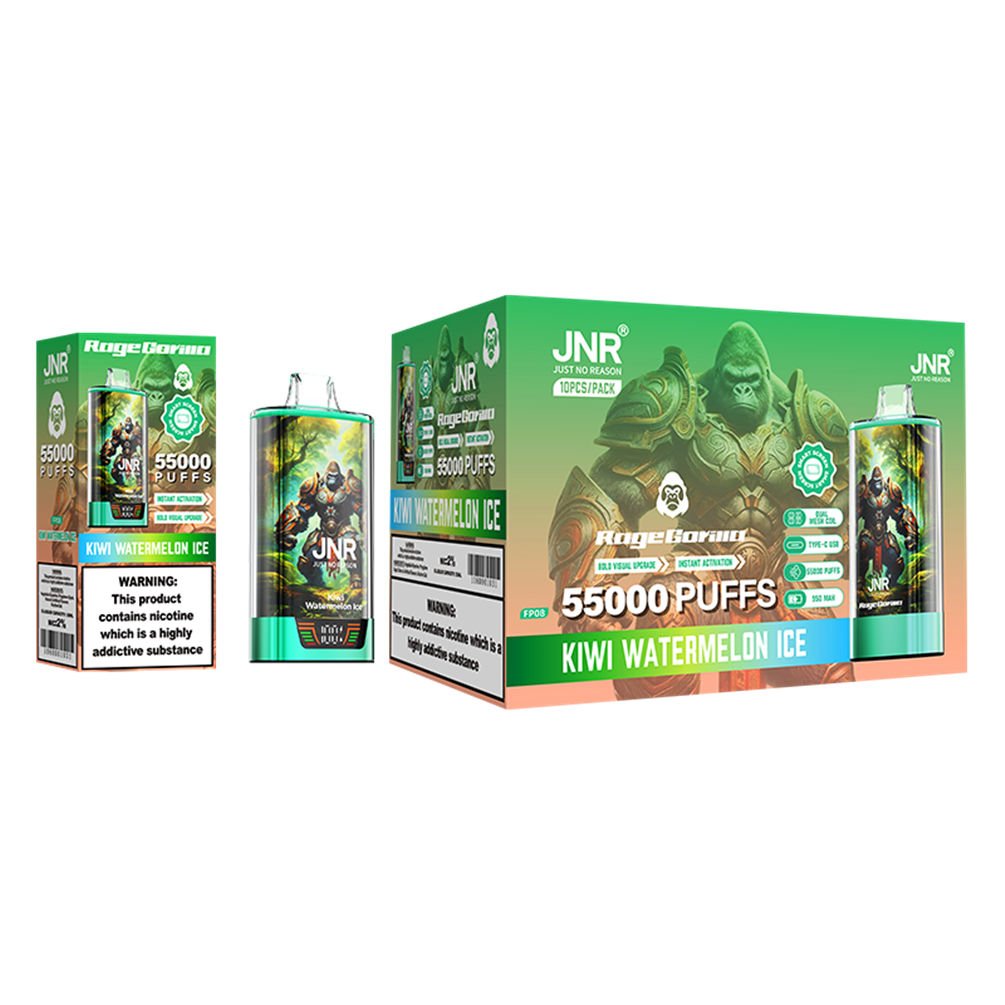 Chaque cigarette électronique JNR Rage Gorilla 55000 Kiwi Watermelon Ice offre jusqu'à 55000 bouffées.