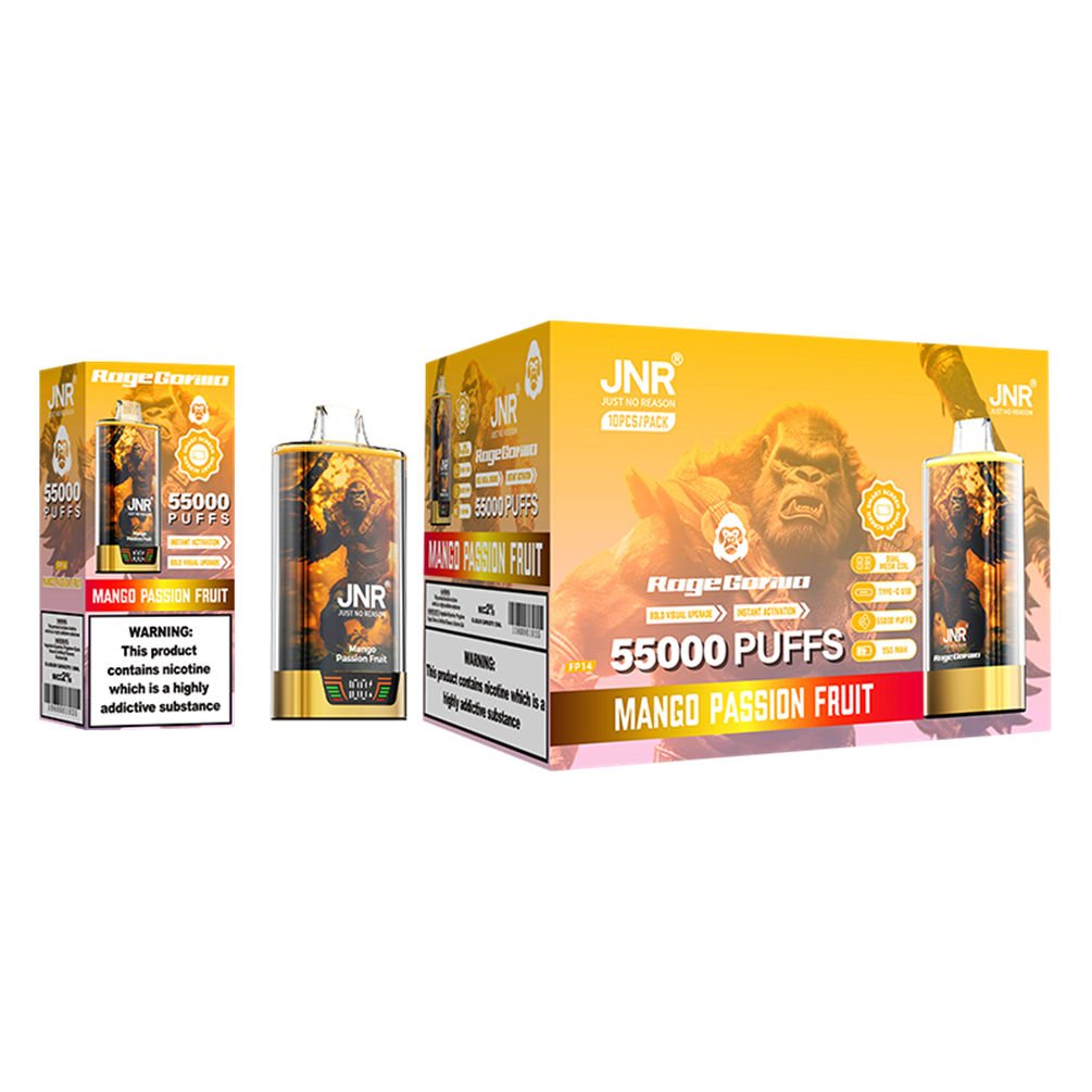 Chaque cigarette électronique JNR Rage Gorilla 55000 Mango Passion Fruit offre jusqu'à 55000 bouffées.