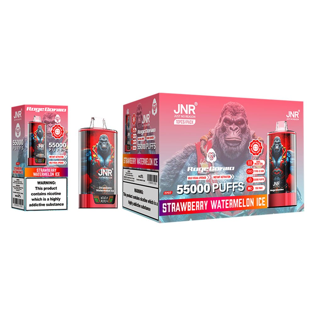 Chaque cigarette électronique JNR Rage Gorilla 55000 Strawberry Watermelon Ice offre jusqu'à 55000 bouffées.